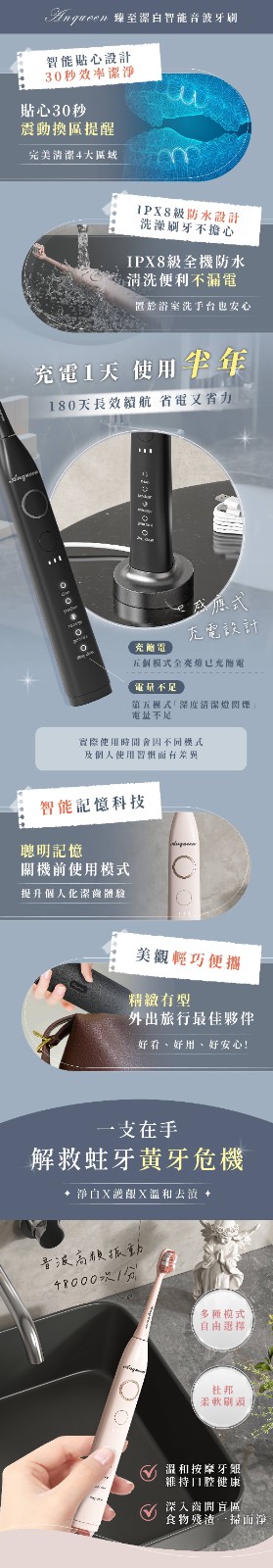 20分鐘前微笑從齒開始!Anqueen安晴臻至潔白智能音波電動牙刷AQ-B101 - 黑色款
